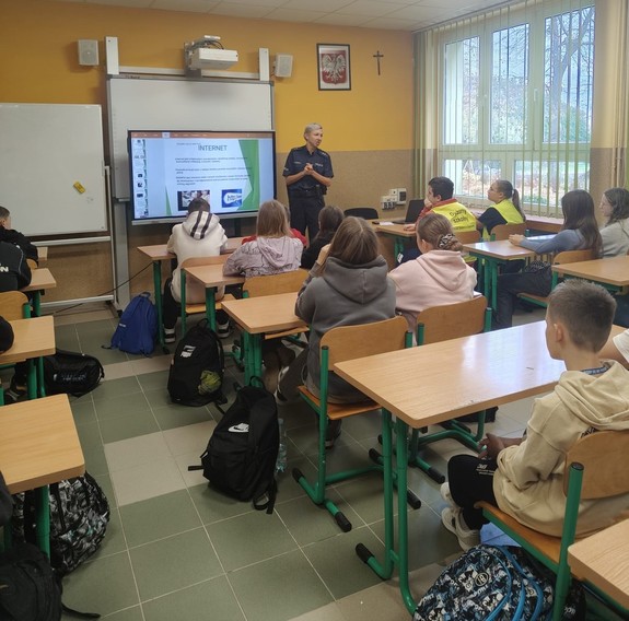W ramach prowadzonych działań profilaktycznych policjantka z mogileńskiej komendy spotkała się z uczniami klasy siódmej Zespołu Szkół w Dąbrowie. Głównym tematem spotkania był problem hejtu, cyberprzemocy i mowy nienawiści.