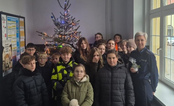 Mogileńską komendę odwiedzili uczniowie z miejscowej szkoły podstawowej nr 3. Dzieci wraz z życzeniami przekazały funkcjonariuszom świąteczny stroik.