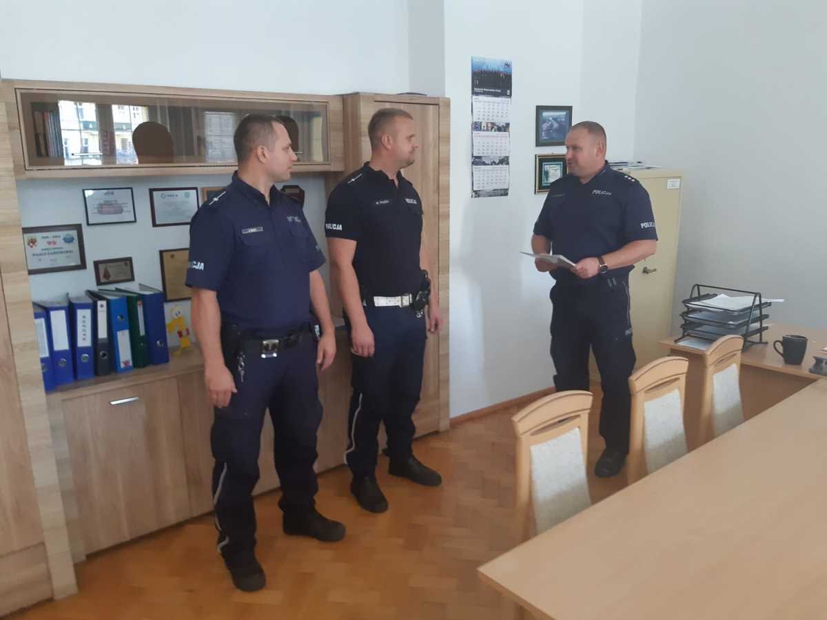 Wczoraj (03.09.2025) Komendant Powiatowy Policji w Mogilnie kom. Paweł Kazubowski w obecności Komendanta Komisariatu Policji w Strzelnie podkom. Tomasza Czaplickiego wręczył dwóm funkcjonariuszom rozkazy personalne o awansach na stopień młodszego aspiranta Policji. Szef mogileńskiej jednostki w kilku słowach skierowanych mł. asp. Dariusza Białka i mł. asp. Mikołaja Palickiego pogratulował ukończenia kursu aspiranckiego i życzył im dalszych sukcesów.
