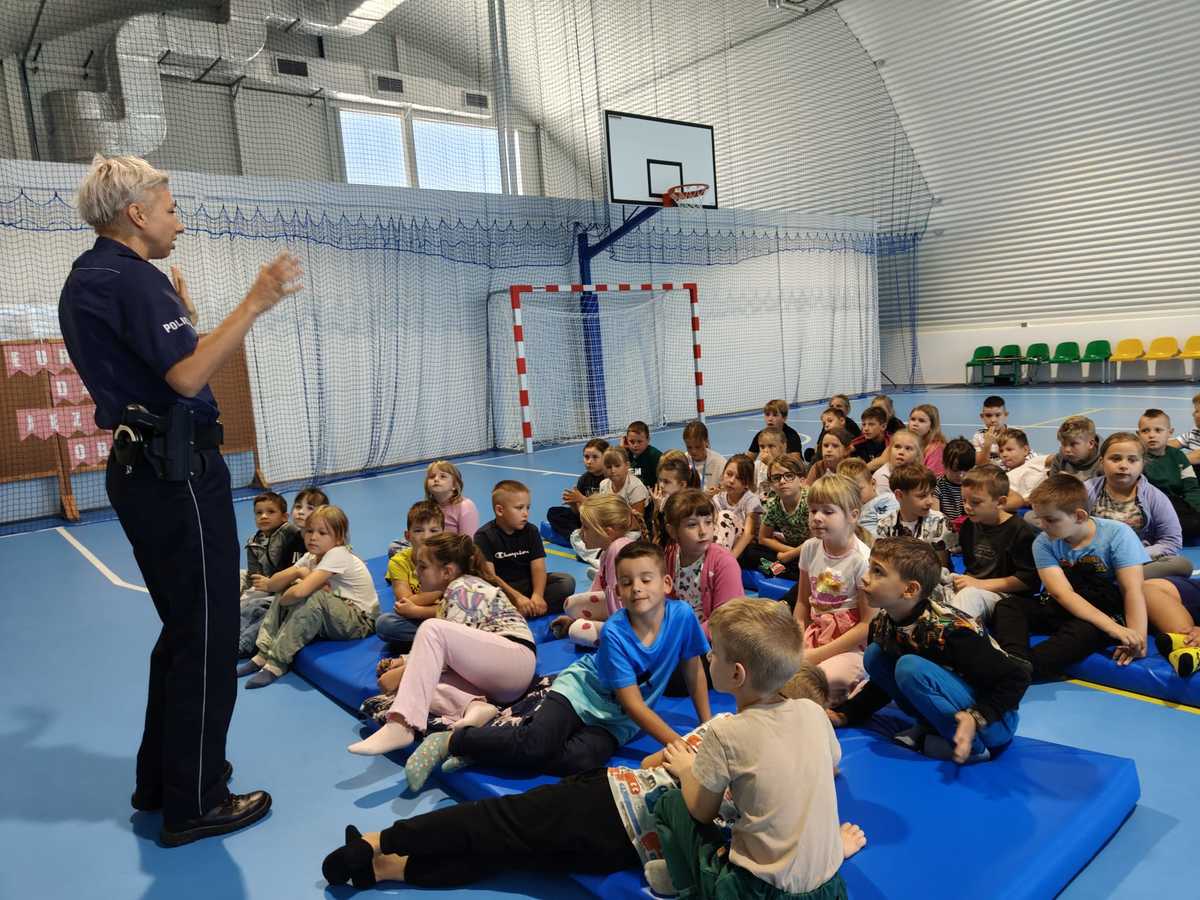 Wczoraj (25.09.2025) policjantka ds. profilaktyki społecznej i nieletnich odwiedziła uczniów klas I – III ze szkoły podstawowej w Szczepankowie, z którymi przeprowadziła zajęcia edukacyjne na temat zasad bezpiecznego poruszania się po drodze. Aspirant Magdalena Pollak zachęcała najmłodszych do noszenia elementów odblaskowych i tłumaczyła, że kiedy piesi są widoczni dla innych uczestników ruchu drogowego, stają się bardziej bezpieczni.