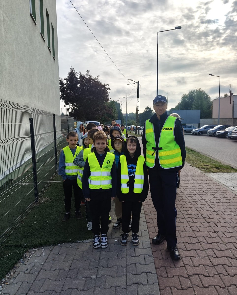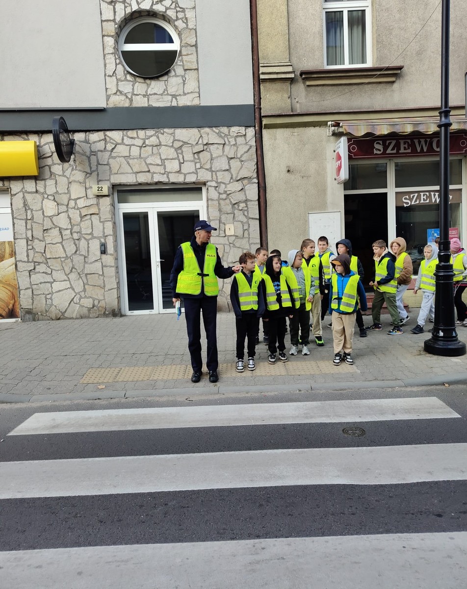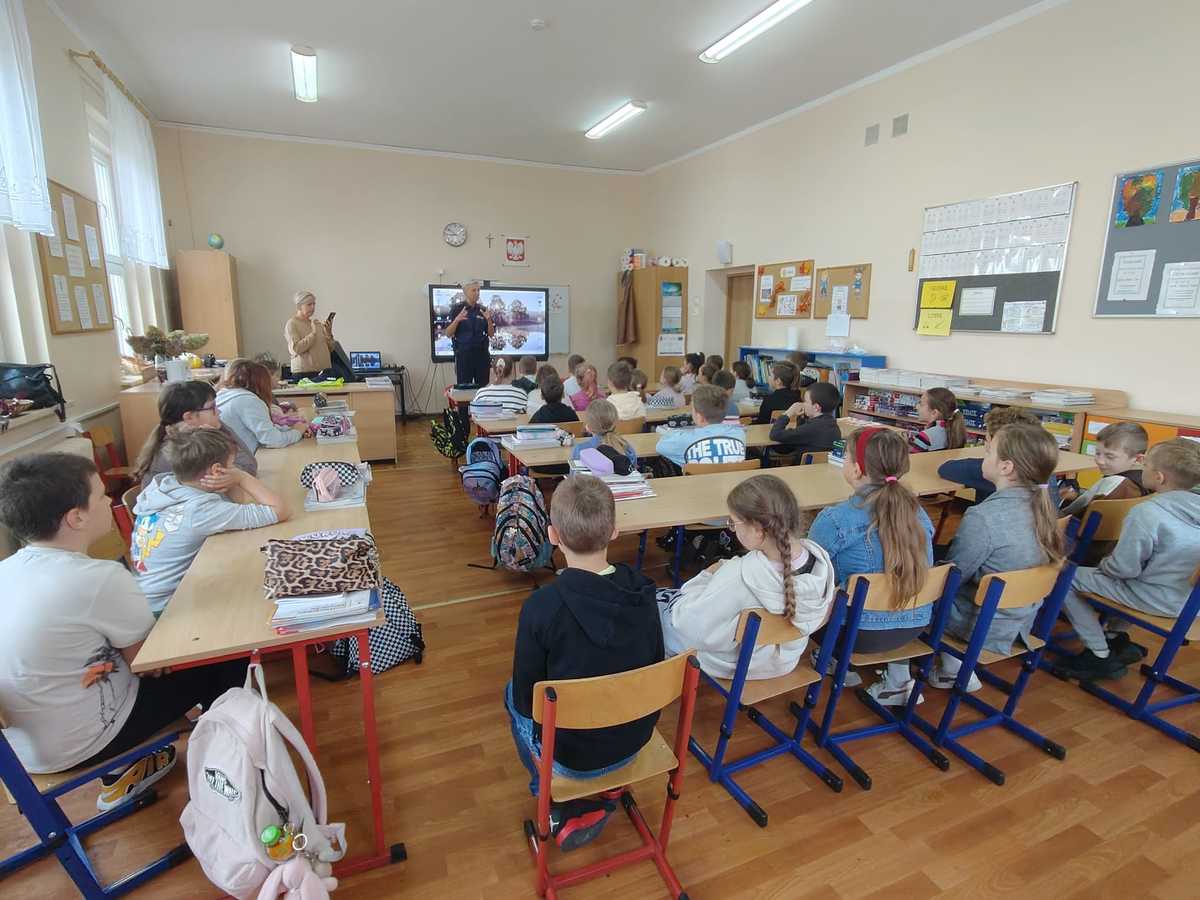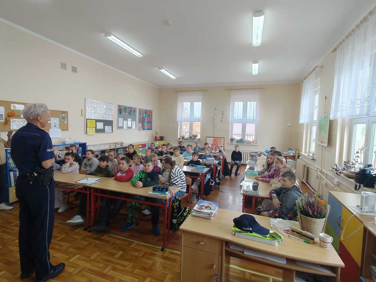 Policjantka prewencji odwiedziła uczniów ze szkoły podstawowej nr 2 w Mogilnie, aby nauczyć ich bezpiecznych zachowań na drodze.
