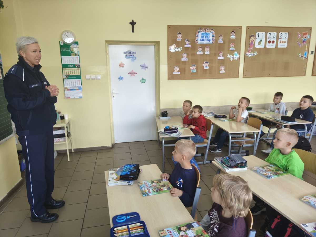 Pierwsze miesiące roku szkolnego to dla policjantów doskonała okazja, by spotkać się z najmłodszymi uczestnikami ruchu drogowego i porozmawiać z nimi o bezpieczeństwie. Jedno z takich spotkań odbyło się w Szkole Podstawowej nr 1 w Mogilnie. Celem przeprowadzonej pogadanki było zwrócenie uwagi dzieciom na czyhające na nich niebezpieczeństwa w drodze do szkoły.