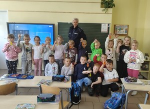 Mówiąc o zagrożeniach w kontakcie z obcymi ostrzegła, aby nie ufać takim osobom i nie nawiązywać z nim kontaktu. Dzieci poznały zasady i sytuacje w jakich można korzystać z numeru alarmowego 112. Na koniec każde dziecko otrzymało „świecącego” misia, a wszystko po to, by droga do szkoły była zawsze bezpieczna.