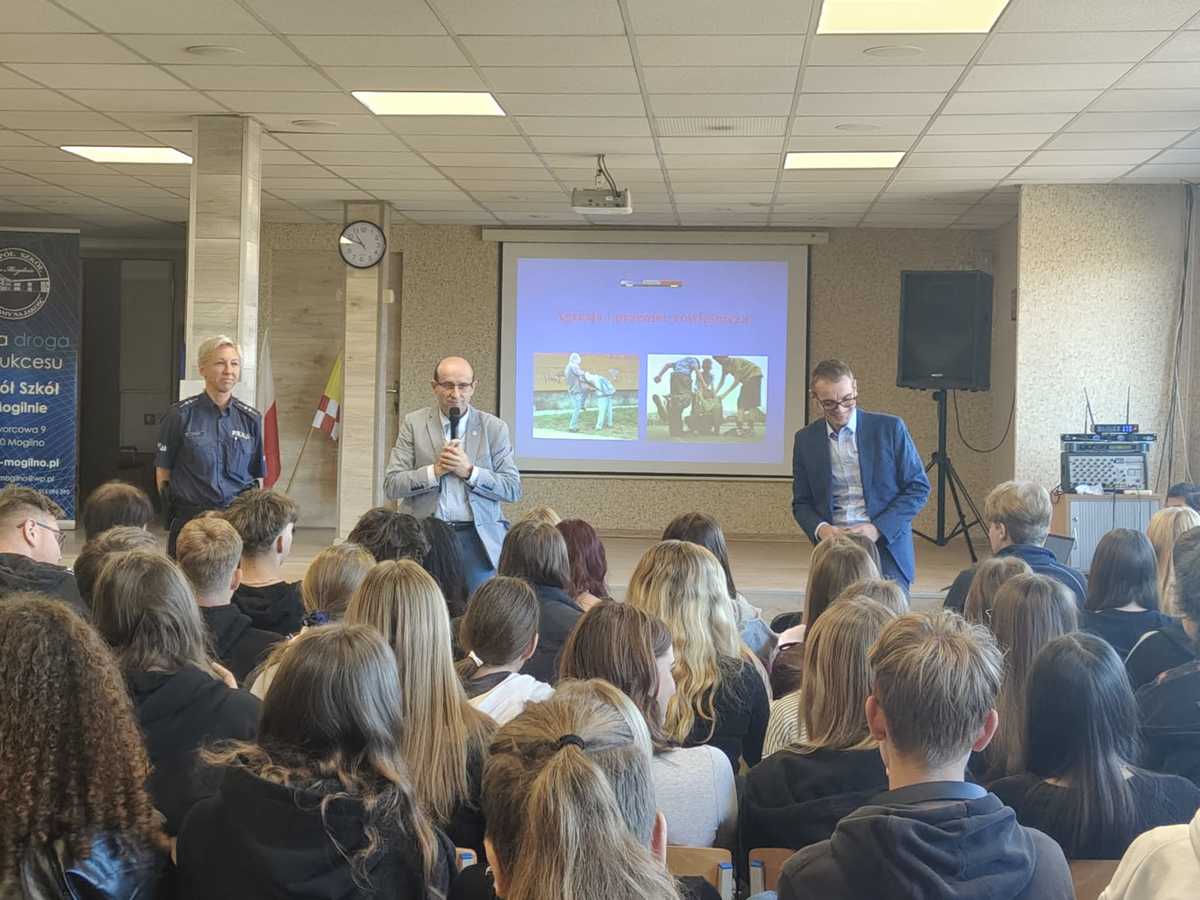 Policjantka prewencji w ramach kampanii odwiedziła uczniów z Zespołu Szkół w Mogilnie. Głównym tematem spotkania było przeciwdziałanie przemocy rówieśniczej oraz kształtowanie postaw opartych na wzajemnym szacunku, również za pośrednictwem sieci Internet. Aspirant Magdalena Pollak przybliżyła uczniom zagadnienia związane z odpowiedzialnością karną osób nieletnich oraz wskazała konsekwencje popełniania czynów karalnych. Ważną część spotkania poświęcono także zagadnieniom cyberbezpieczeństwa.