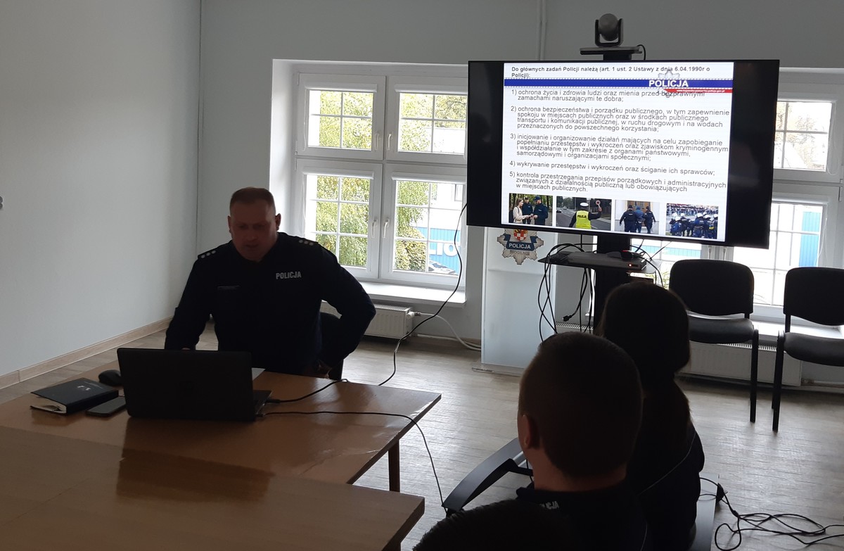 Komendant Powiatowy Policji w Mogilnie spotkał się z policjantami będącymi w służbie przygotowawczej. Kom. Paweł Kazubowski podczas rozmowy poruszył tematy zawodowe związane z bezpieczeństwem mundurowych, etyką pracy policjanta, wizerunkiem oraz profesjonalnym wykonywaniem czynności służbowych.