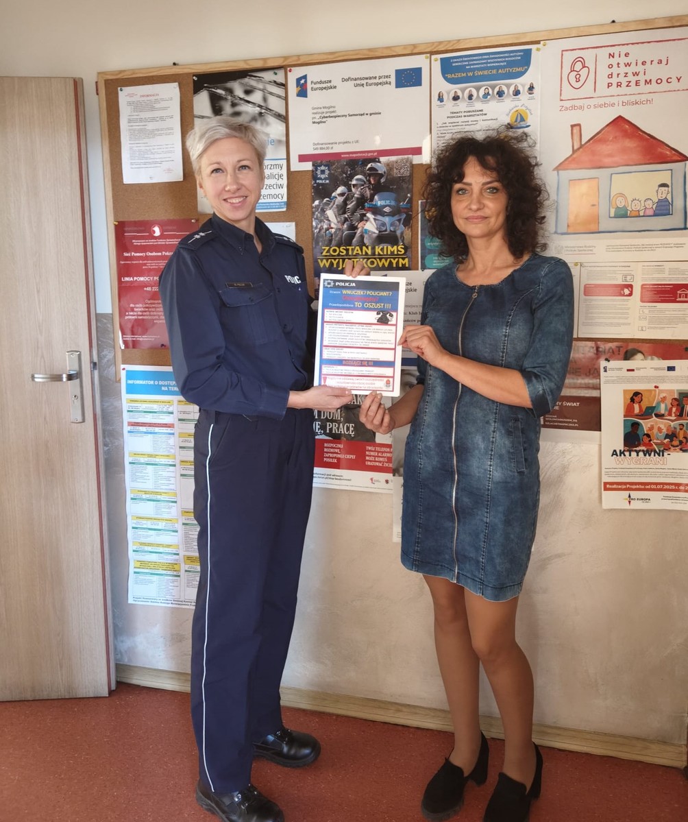 Policjanci cały czas szukają bezpiecznych i skutecznych rozwiązań, aby ostrzegać i edukować na temat oszustw pod tzw. „legendą”. Aby dotrzeć do szerokiego grona seniorów, asp. Magdalena Pollak i mł. asp. Dariusz Banaszak odwiedzali miejsca użyteczności publicznej. Funkcjonariusze przekazali plakaty, z których można się dowiedzieć, jakie są główne metody działania oszustów i jak postępować, aby nie stać się ich ofiarą.