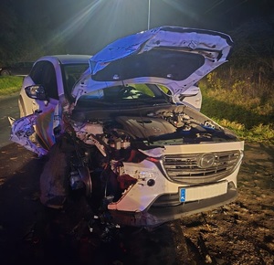 W minioną sobotę (08.11.2025) o godzinie 21:15 w miejscowości Świerkówiec, 20-letni kierujący samochodem osobowym Opel Insignia w wyniku nadmiernej prędkości nie zdążył wyhamować przed skręcającym przed nim w prawo pojazdem, w wyniku czego zjechał na przeciwległy pas, gdzie zderzył się czołowo z pojazdem marki Mazda.