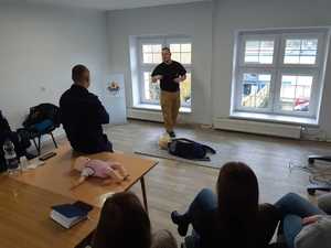 Prowadzący prezentował, jak należy prawidłowo wykonywać czynności ratownicze, a następnie nadzorował prawidłowość oraz efektywność ich udzielania.