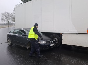 Od wczoraj (26.01.2026) na drogach powiatu mogileńskiego panują trudne warunki atmosferyczne. Marznące opady deszczu powodują szybkie oblodzenie nawierzchni, często w sposób niewidoczny dla kierujących. Nawet odcinki dróg, które z pozoru wydają się bezpieczne, mogą w jednej chwili stać się przyczyną utraty kontroli nad pojazdem. W takich warunkach droga hamowania ulega znacznemu wydłużeniu, a reakcja pojazdu na ruchy kierownicą jest ograniczona. Każde gwałtowne hamowanie, przyspieszanie czy nagła zmiana pasa ruchu może doprowadzić do niebezpiecznego zdarzenia. Apelujemy o zmniejszenie prędkości i dostosowanie jej do aktualnych warunków, zwiększenie odstępów między pojazdami oraz unikanie dynamicznych manewrów. Szczególną ostrożność należy zachować w rejonach skrzyżowań, przejść dla pieszych, wiaduktów czy mostów, gdzie nawierzchnia może obladzać się najszybciej. Trudna sytuacja dotyczy również pieszych. Oblodzone chodniki, przystanki czy przejścia dla pieszych mogą zwiększać ryzyko upadków i urazów. Warto poruszać się wolniej, zwracać uwagę na otoczenie i zadbać o odpowiednie obuwie. Przypominamy, że w takich trudnych warunkach atmosferycznych najważniejsza jest odpowiedzialność. Każda podróż powinna być zaplanowana z zapasem czasu, a decyzje podejmowane na drodze muszą uwzględniać realne warunki. Bezpieczeństwo własne oraz innych uczestników ruchu powinno być bezwzględnym priorytetem.