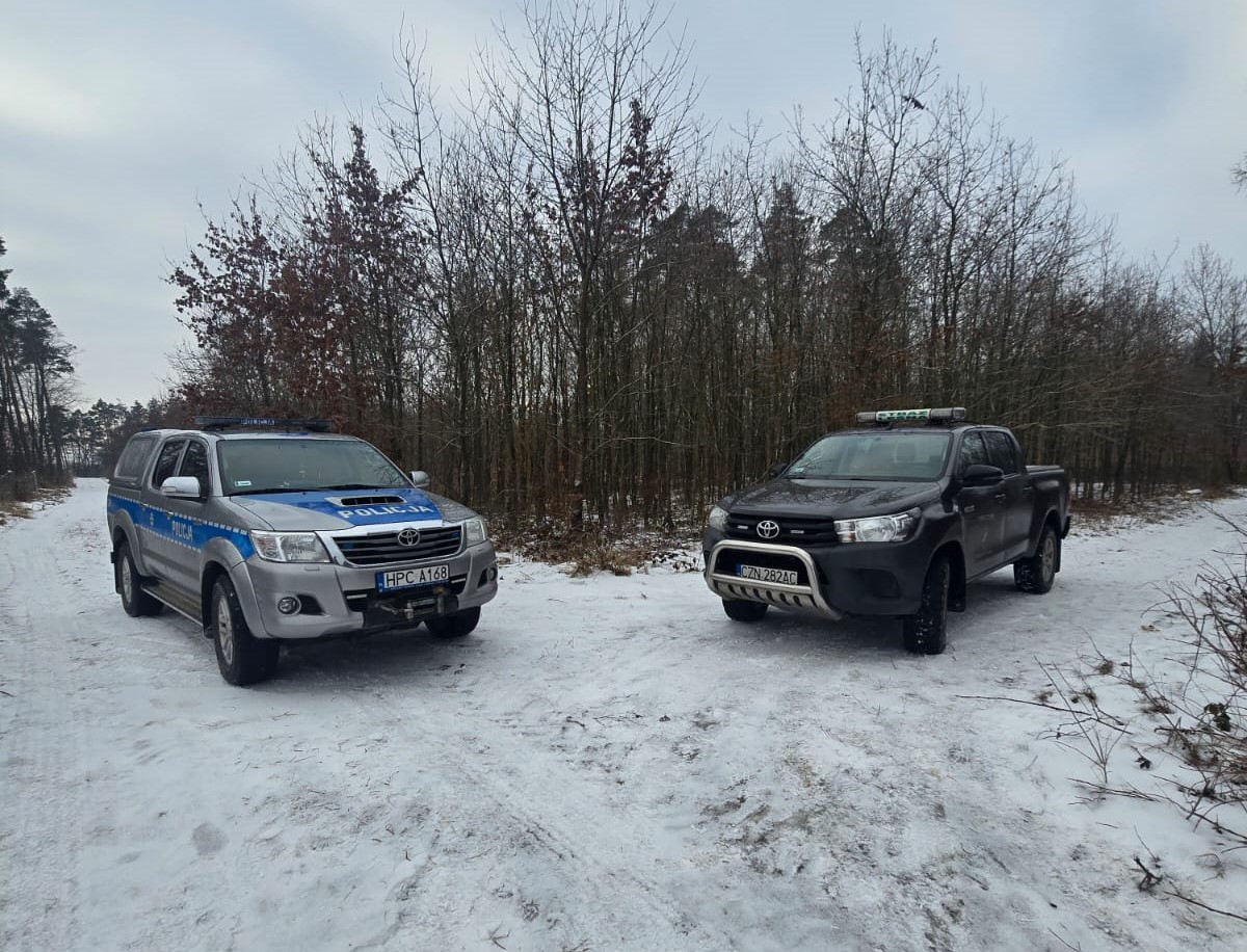 Policjanci z mogileńskiej komendy systematycznie współpracują ze strażnikami leśnymi, aby wspólnie przeciwdziałać przestępczym procederom dokonywanym na obszarach leśnych. Tym razem dzielnicowi wspólnie z funkcjonariuszami Straży Leśnej z Nadleśnictwa w Gołąbkach patrolowal kompleksy leśne mieszczące się na terenie gminy Mogilno. Wczorajszy (29.01.2026) patrol odbył się z wykorzystaniem samochodów terenowych zarówno Straży Leśnej, jak i Policji.