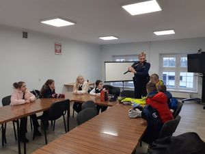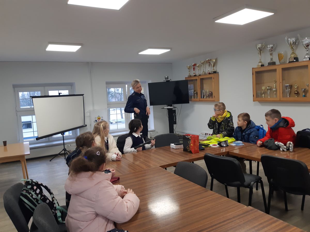 Z racji zbliżających się ferii, tematem wiodącym było bezpieczeństwo w trakcie zimowego wypoczynku. Policjantka omówiła zasady bezpiecznych zabaw na świeżym powietrzu, w tym m.in. bitwy na śnieżki, korzystanie z sanek oraz innych sprzętów wykorzystywanych podczas zimowych aktywności. Zwracała uwagę na potencjalne zagrożenia, jakie mogą pojawić się podczas nieodpowiedzialnych zachowań, a także podkreślała, jak ważne jest rozsądne podejmowanie decyzji i reagowanie w sytuacjach niebezpiecznych.