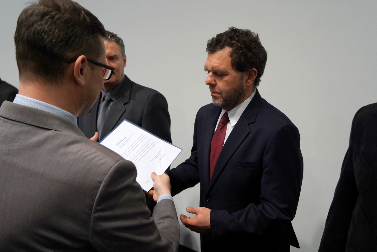 • ujęcie na przemawiającego Zastępcę Prezydenta Miasta Bydgoszczy