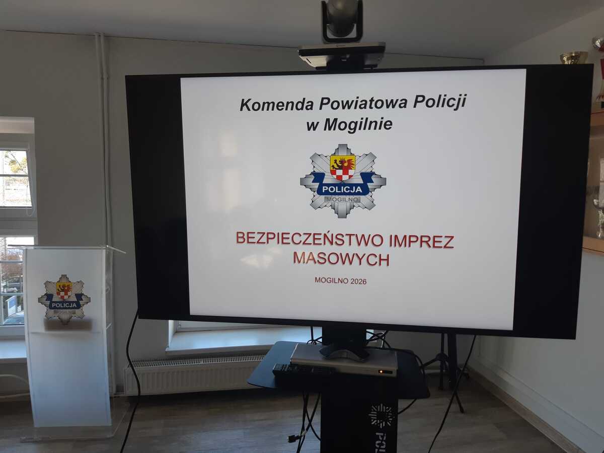Bezpieczeństwo meczów piłkarskich, a także innych imprez o charakterze artystycznym i sportowym, było tematem przewodnim wczorajszego (04.03.2026) spotkania, którego inicjatorem była mogileńska policja. Do udziału zaproszono przedstawicieli klubów piłkarskich oraz podmiotów mogących występować w charakterze organizatora imprez kulturalno - rozrywkowych na terenie naszego powiatu. Funkcjonariusze przedstawili aktualny stan prawny, rolę i zadania organizatora w zakresie spełnienia warunków bezpieczeństwa na obiektach.