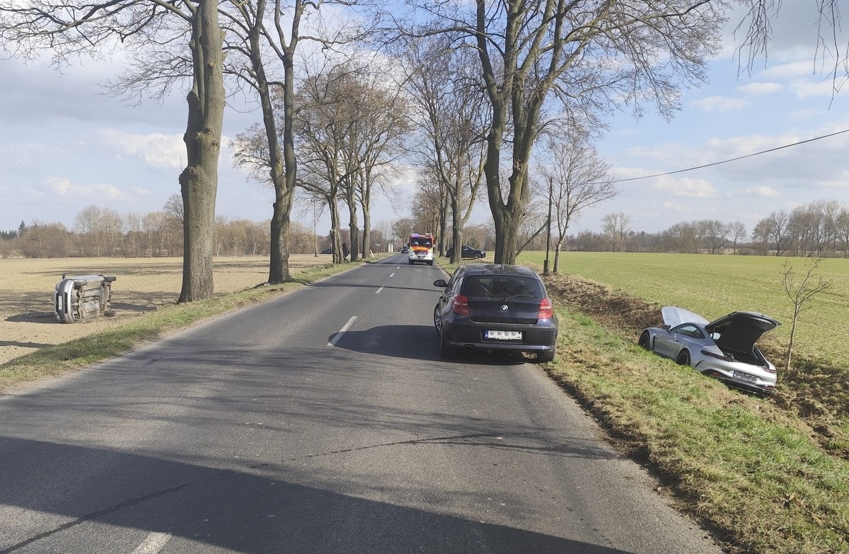 Wczoraj (22.03.2026) o godzinie 12:40 dyżurny mogileńskiej komendy otrzymał zgłoszenie o wypadku drogowym w miejscowości Olsza. Na miejsce pojechali policjanci ruchu drogowego, którzy ustalili, że 31-letnia kierująca samochodem BMW 118 podczas wykonywania manewru wyprzedzania, nie upewniła się czy nie jest wyprzedzana przez inny pojazd, w wyniku czego doprowadziła do bocznego zderzenia z wyprzedzającym ją pojazdem Mercedes AMG GT63, który z kolei uderzył w jadący przed BMW pojazd Toyota Yaris. Uczestnicy zdarzenia byli trzeźwi. Obrażeń doznał jedynie kierujący Toyotą 68-latek. Mężczyzna z podejrzeniem urazu żeber został przewieziony przez ZRM do szpitala. Policjanci za naruszenie przepisów i spowodowanie zagrożenia bezpieczeństwa w ruchu drogowym zatrzymali 31-letniej sprawczyni prawo jazdy. Okoliczności wypadku wyjaśniają śledczy z mogileńskiej komendy.