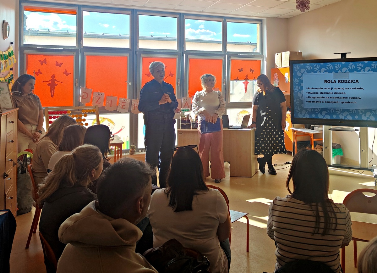 Wczoraj (27.04.2026) asp. Magdalena Pollak zajmująca się profilaktyką społeczną w mogileńskiej komendzie spotkała się z uczniami klas 1-3 oraz ich rodzicami w Szkole Podstawowej nr 3 w Mogilnie. Wspólnie z nauczycielami uczyła dzieci zasad bezpieczeństwa i ochrony przed wykorzystaniem seksualnym.