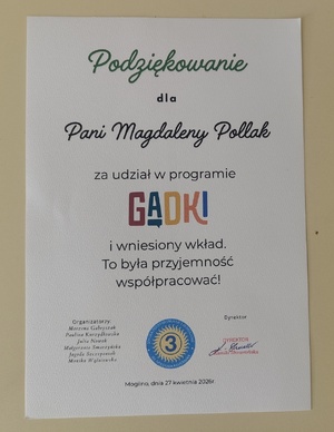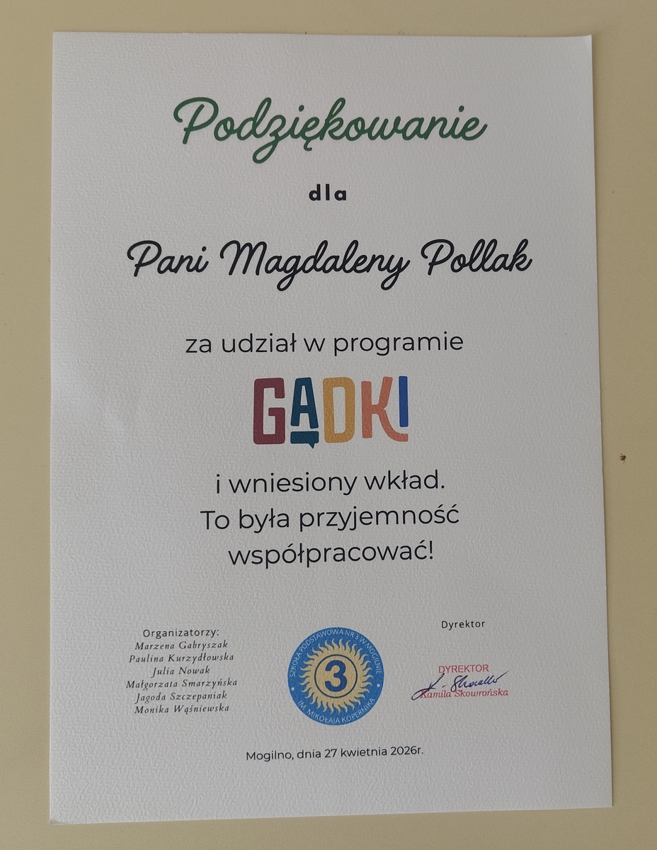 GADKI to akronim 5 wskazówek, które policjantka z mogileńskiej komendy wspólnie z nauczycielami ze Szkoły Podstawowej nr 3 w Mogilnie przekazała podczas spotkania z uczniami klas 1-3 i ich rodzicami. Spotkanie odbyło się ramach działań profilaktycznych zapobiegających wykorzystaniu seksualnemu.
