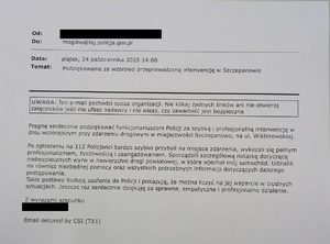 Ponownie odnotowujemy zwiększoną aktywność oszustów, którzy za pomocą poczty elektronicznej podszywają się pod policjantów Centralnego Biura Śledczego Policji. Zachowajmy szczególną ostrożność bo przestępcy modyfikują adresy e-mail, z których rozsyłają wiadomości, naniesione na pismach „pieczątki” i tylko czekają na nasz błąd!